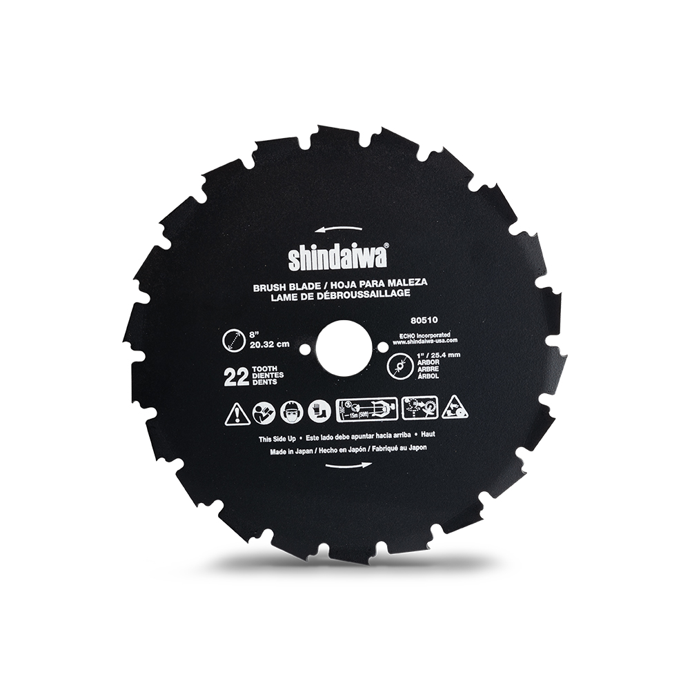Shindaiwa's 8" 22-Tooth Clearing Saw Blade (25mm) is perfect for clearing and cutting brush and saplings. Ideal for large weeds, reeds, heavy grass, bushes, and small trees, this robust brush blade delivers exceptional performance in tough cutting applications, ensuring your job gets done efficiently.